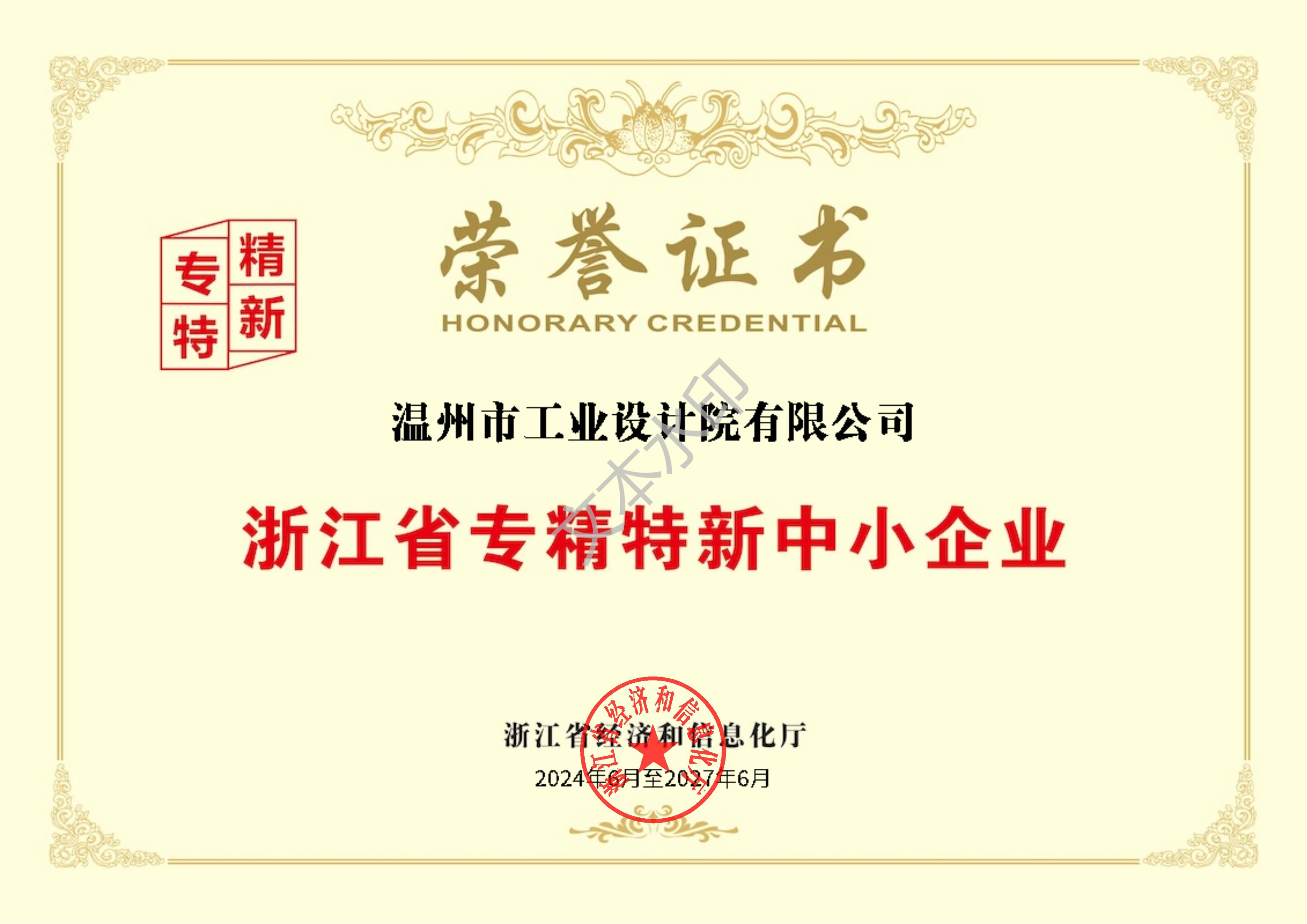 浙江省專精特新中小企業(yè)榮譽(yù)證書(shū)