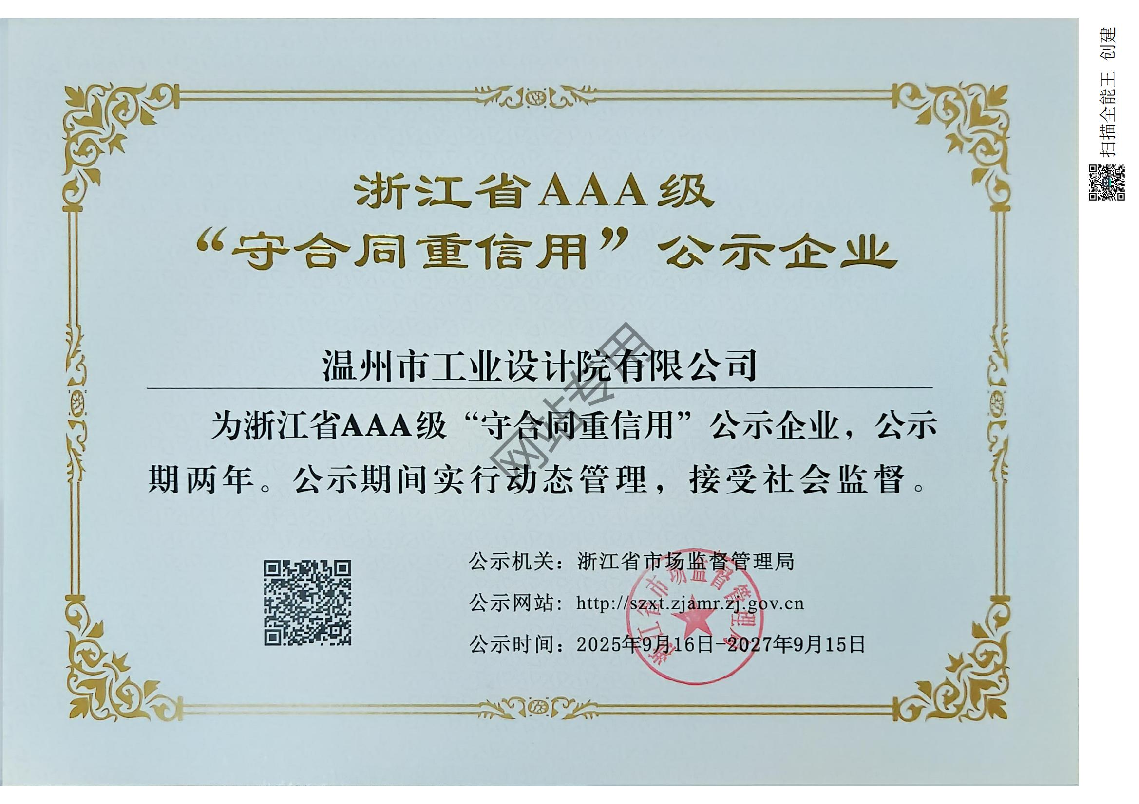 浙江省AAA級(jí)守合同重信用企業(yè)2025