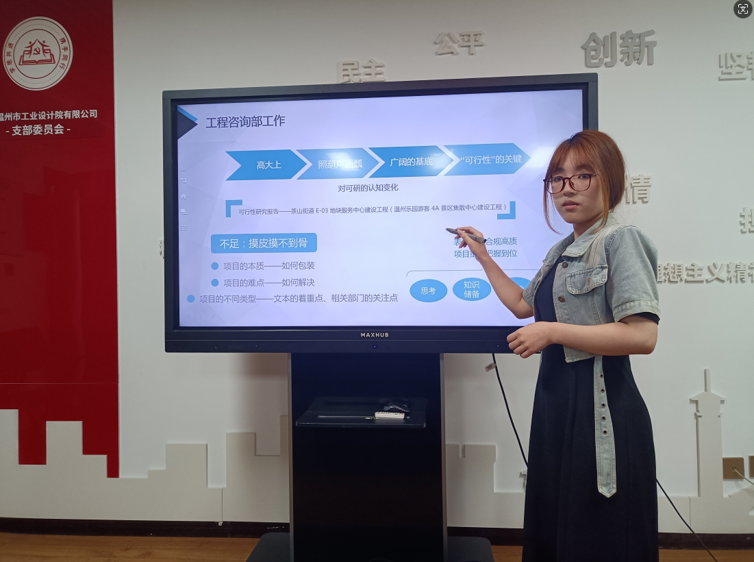 為更好地展示新員工的工作成果,為其提供一個(gè)交流學(xué)習(xí)、共繪未來的平臺(tái),近日,工業(yè)院黨支部舉辦了“繪夢(mèng)未來”新員工工作成果匯報(bào)會(huì),10余位新員工參加了本次匯報(bào)會(huì),展示分享入職一年來他們參與公司多個(gè)重大項(xiàng)目的設(shè)計(jì)、咨詢等工作時(shí)的工作成效與體會(huì)。