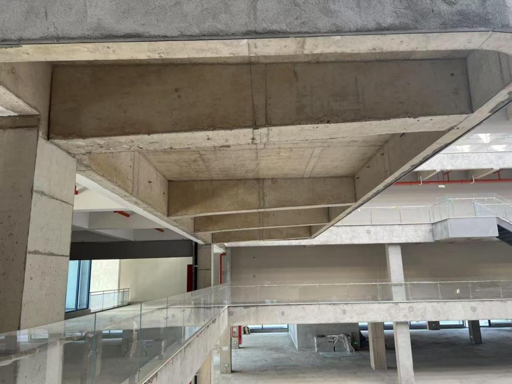 技術(shù)創(chuàng)新:通過對撓度和裂縫進行控制,達(dá)到砼框架結(jié)構(gòu)6米大懸挑的要求;采用寬扁梁以及給排水管道穿梁的做法解決要求最大凈空的要求;中庭采用24米大跨度井字梁結(jié)構(gòu)。